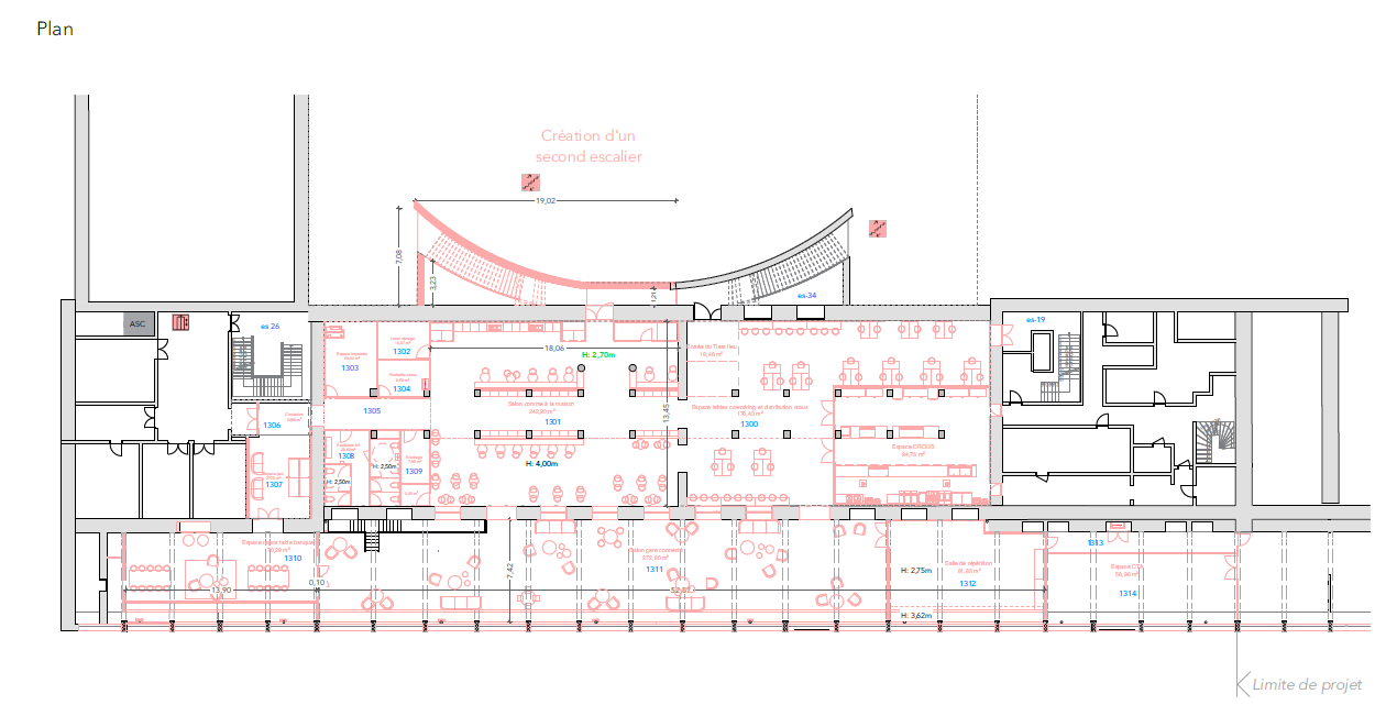 - Espace multi-fonctions avec zone de restauration (CROUS) et espace de co-working aux autres moments de la journée